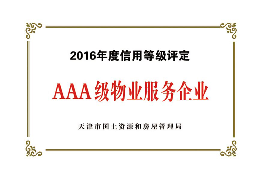 公司目前被授予:中國保安協(xié)會(huì)理事單位、物業(yè)管理綜合實(shí)力入圍企業(yè)、天津市物業(yè)協(xié)會(huì)理事單位、天津市保安協(xié)會(huì)常務(wù)理事單位、天津市保潔協(xié)會(huì)明星企業(yè)、天津市科技小巨人企業(yè)、天津市科技型企業(yè)、天津市物業(yè)管理企業(yè)優(yōu)秀項(xiàng)目經(jīng)理、企業(yè)信用評(píng)價(jià)體系A(chǔ)AA級(jí)企業(yè)、AAA級(jí)誠信經(jīng)營示范單位、AAA級(jí)重合同守信用單位、2017年被天津市工商業(yè)聯(lián)合會(huì)評(píng)為天津市民營企業(yè)促進(jìn)就業(yè)百強(qiáng)企業(yè)、社會(huì)捐贈(zèng)百強(qiáng)企業(yè)、2018年銷售收入百強(qiáng)企業(yè),2020年被天津市退役軍人事務(wù)局評(píng)為天津市吸納退役軍人就業(yè)先進(jìn)單位。